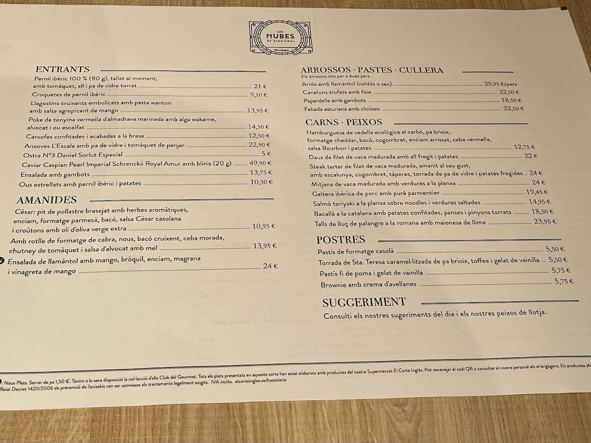 Las Nubes de Diagonal Menu